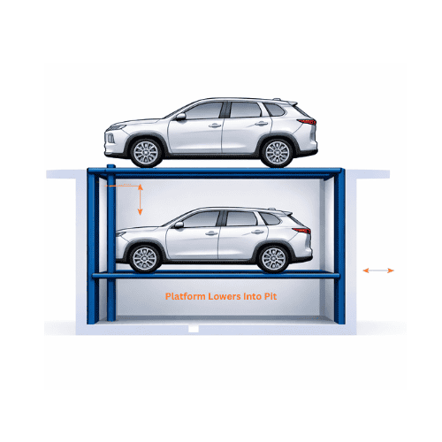 The Independent Parking System is the ideal solution for parking areas with very limited space. By utilising a pit, this system allows cars to be parked independently, maximising a single parking space both cost-effectively and efficiently. These systems are perfect for new developments of any size, providing a practical and space-saving solution for urban environments or properties with restricted parking capacity.